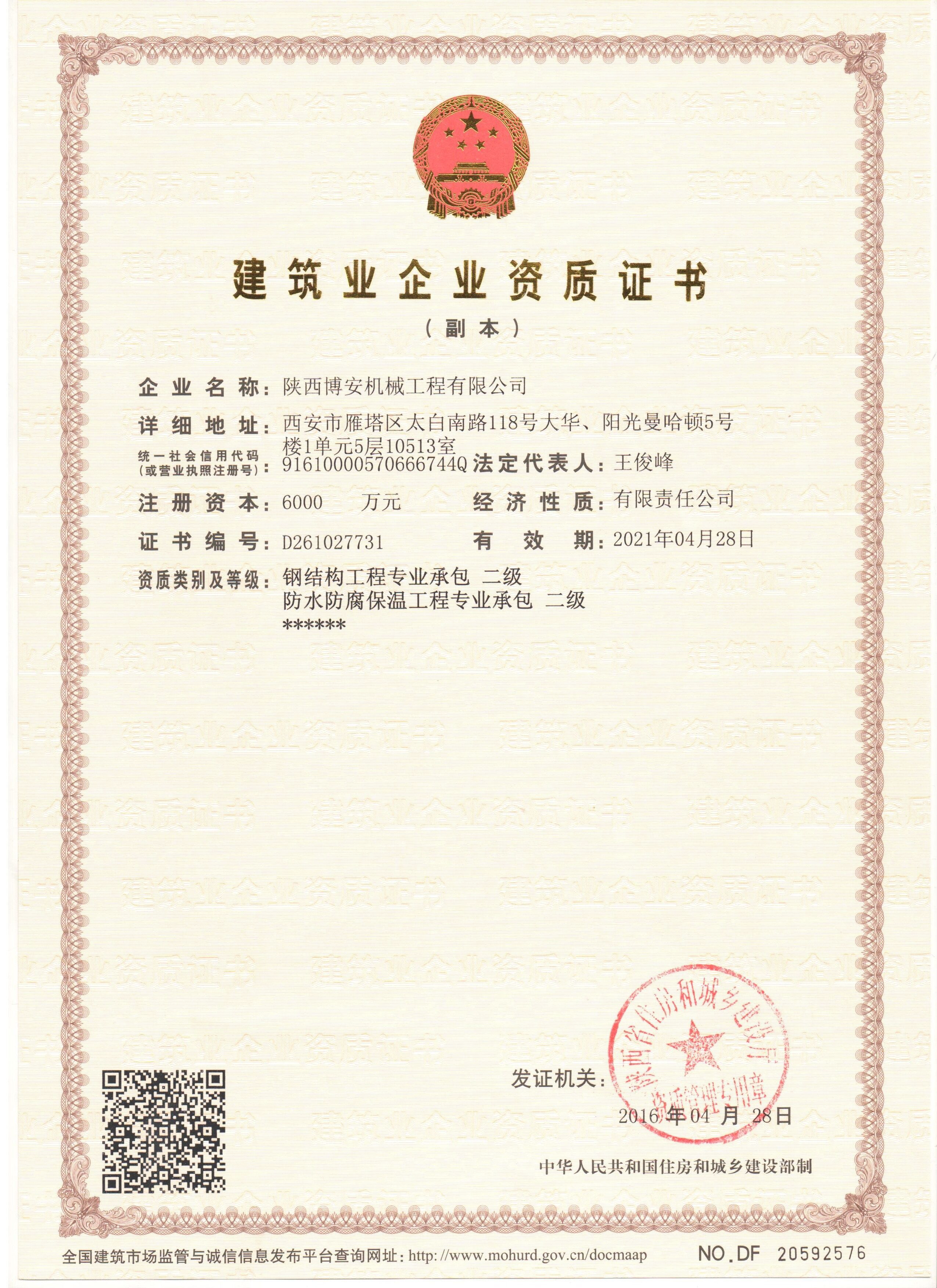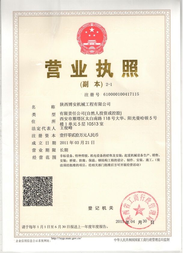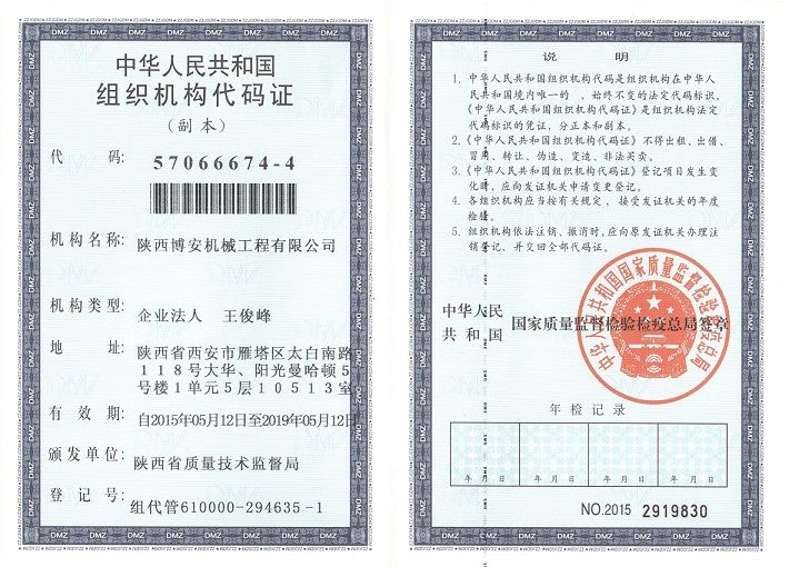 陕西博安机械工程有限公司 认证企业 Lv1 普通会员